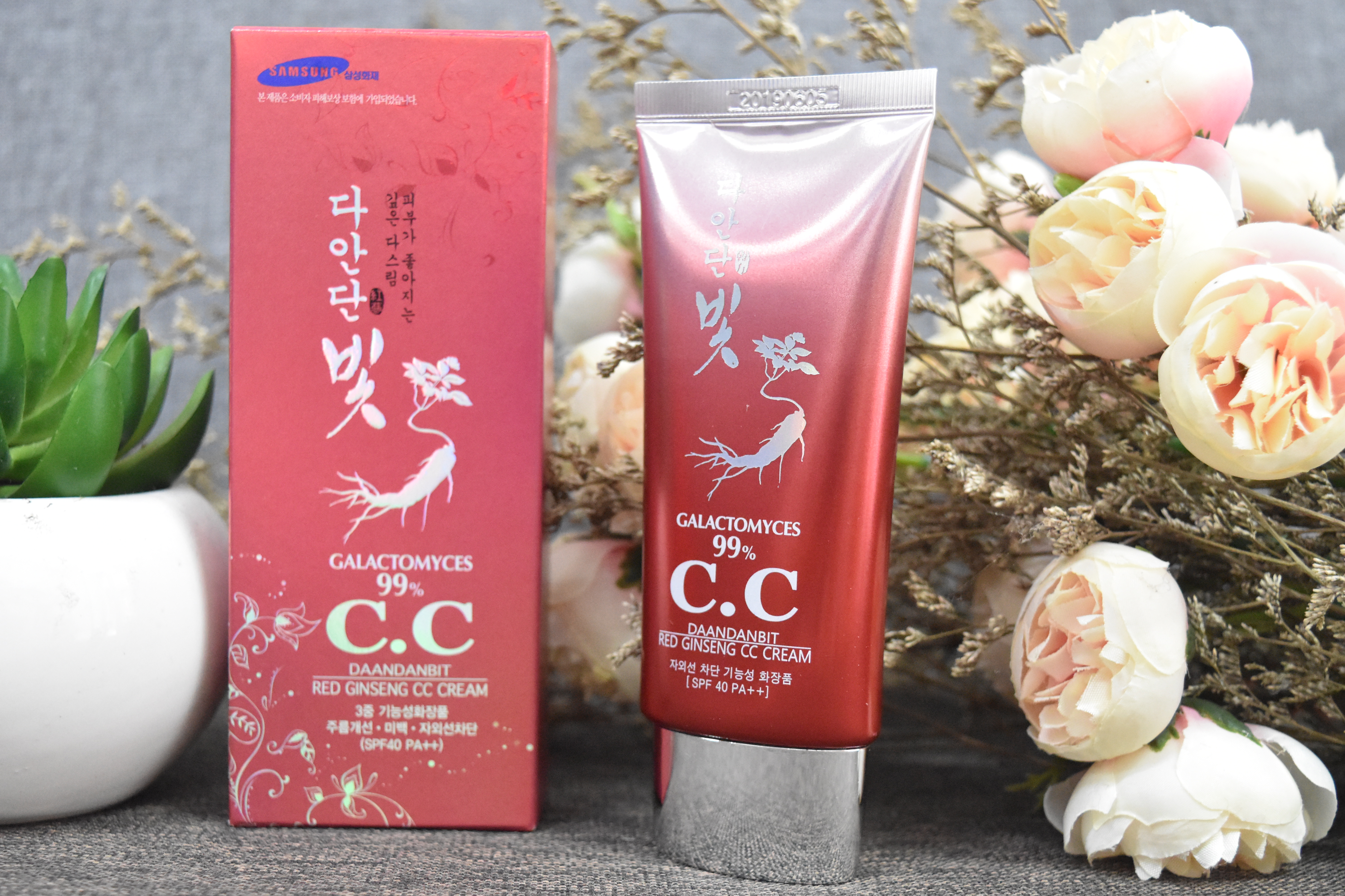Kem nền sâm đỏ CC Cream được chiết xuất từ hồng sâm của Hàn Quốc, có tác dụng dưỡng da, che khuyết điểm, là bước trang điểm cực kỳ tiện lợi