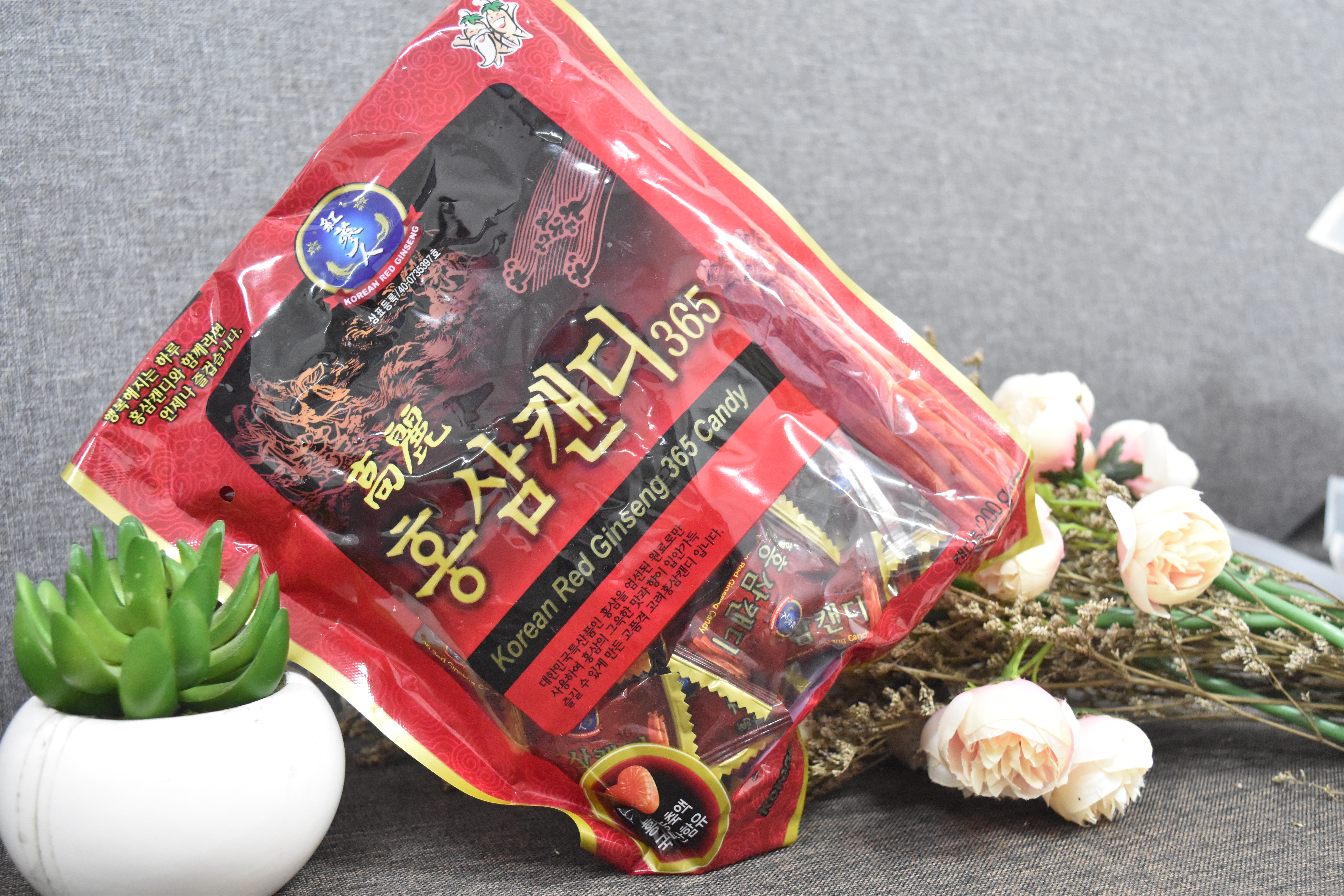 Kẹo sâm Hàn Quốc với tinh chất hồng sâm, bột hồng sâm Hàn Quốc 6 năm tuổi có tác dụng thư giãn và lấy lại cân bằng tinh thần.